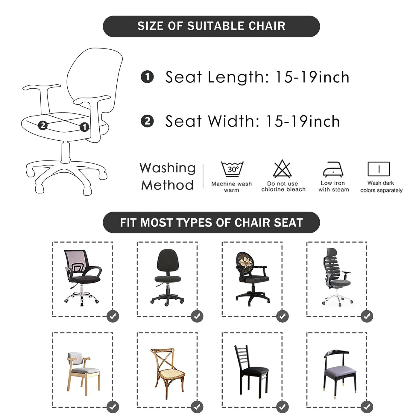 Size Of Best Suitable Chair:Seat Length:14.9-20.5In (38-52Cm),Seat Width:14.9-20.5In (38-52Cm). | Water Resistant Jacquard Fabric Protects Your Office/Computer Chair From Unexpected Stains. Available In Different Colors And Patterns Design To Match Any Interior. | Comes In A Universal Size,1 Piece Seat Cover Will Fit Most Types Of Office Chairs. Can Be Used At Home, Office Or At Special Events. | Elastic Band Design Offers Perfect Fit And Non-Slip Grip. Elastic Fabric For Easy Application. | Totally Machine Washable. Don'T Use Chlorine Bleach, Wash Dark Colors Separately, Low Iron With Steam.