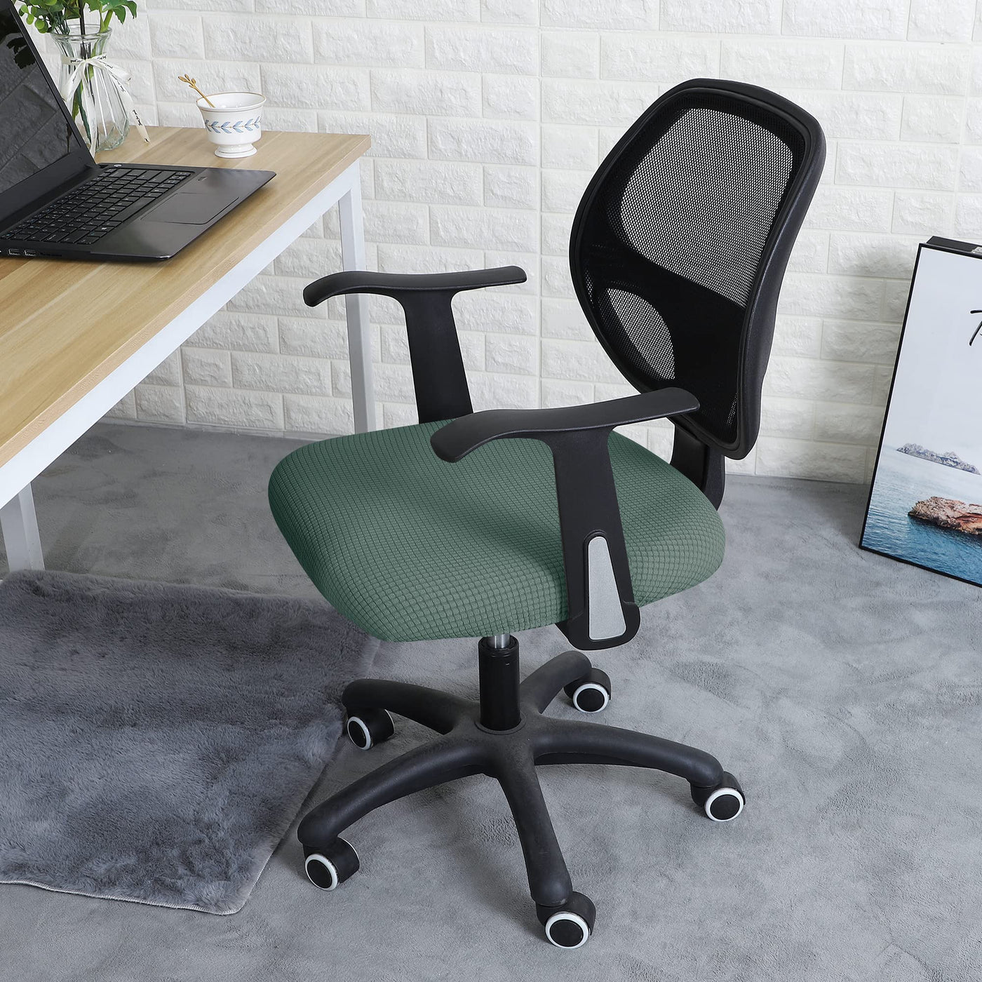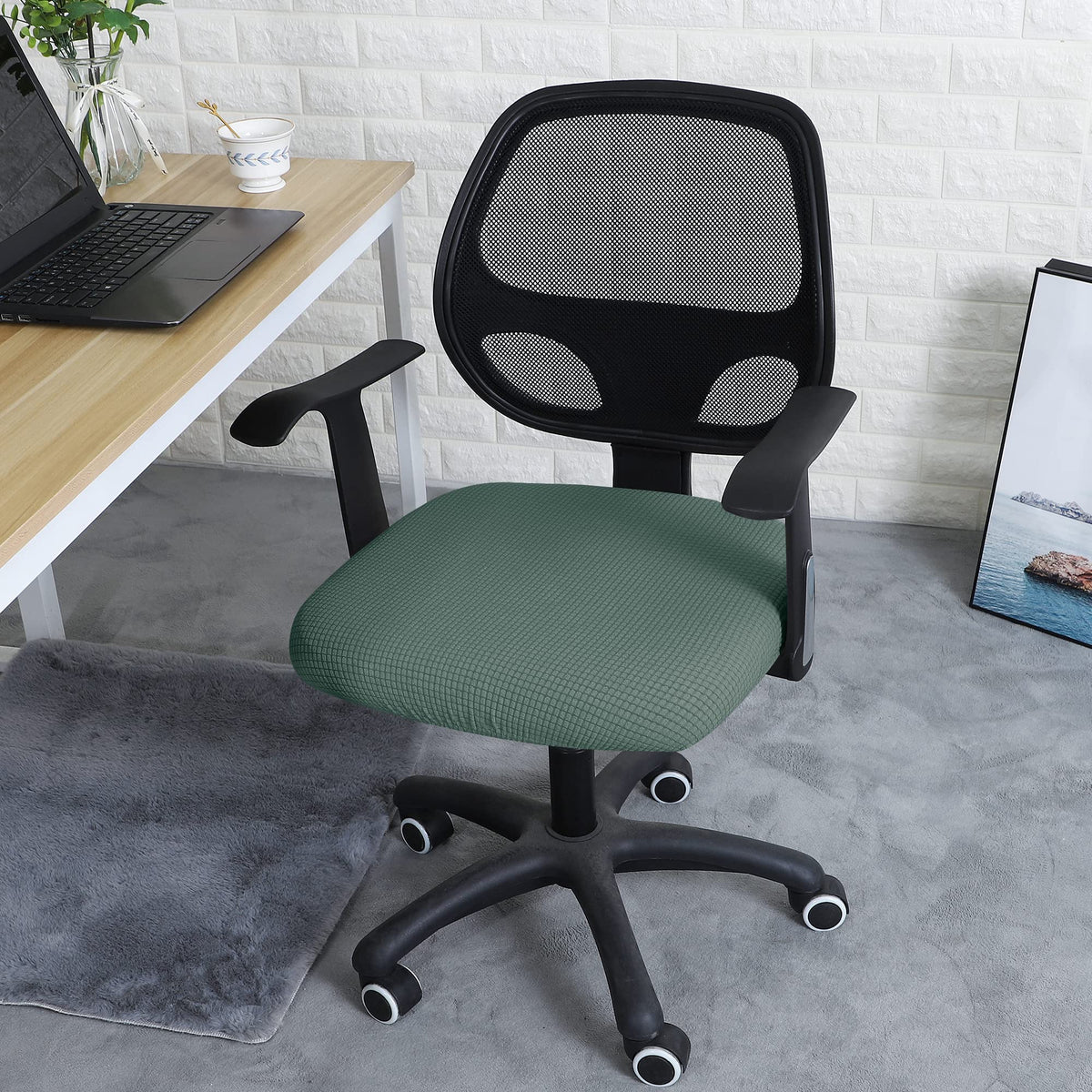 Forcheer Office Desk Chair Seat Covers Water Resistant Jacquard Computer Chair Seat Cushion Slipcovers-Laurel Green