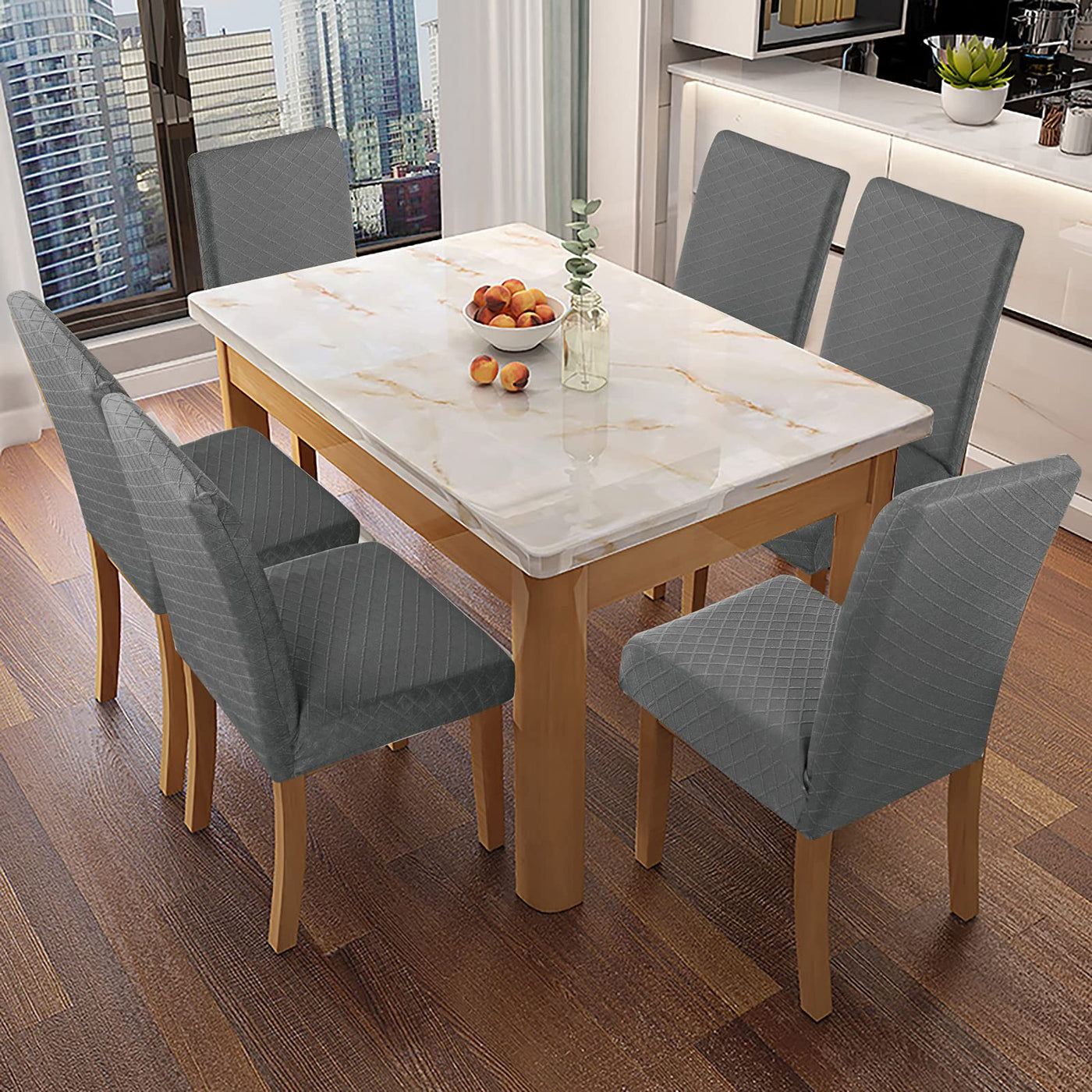 Q: How many chair covers come in a set, and what color options are available?A: The Genina waterproof chair covers come in a set of 6 pieces and are available in a stylish gray color.