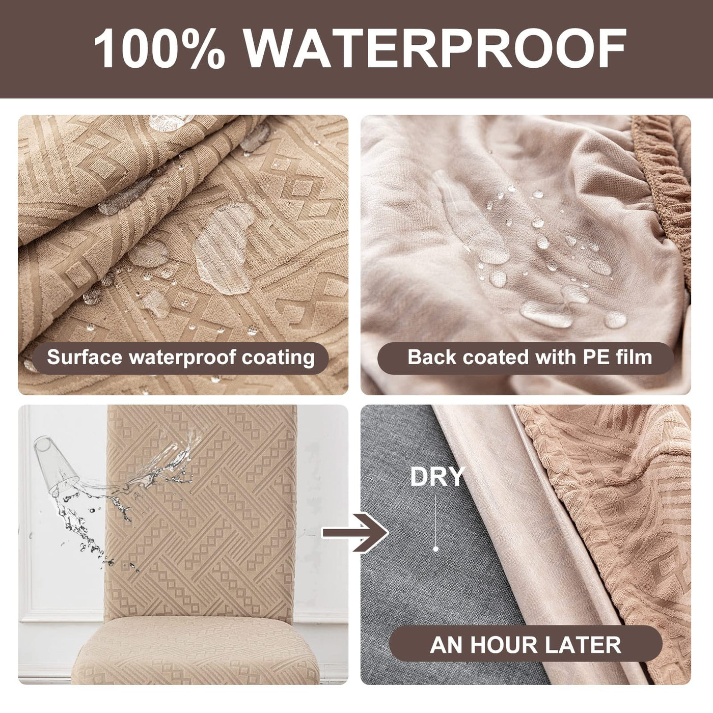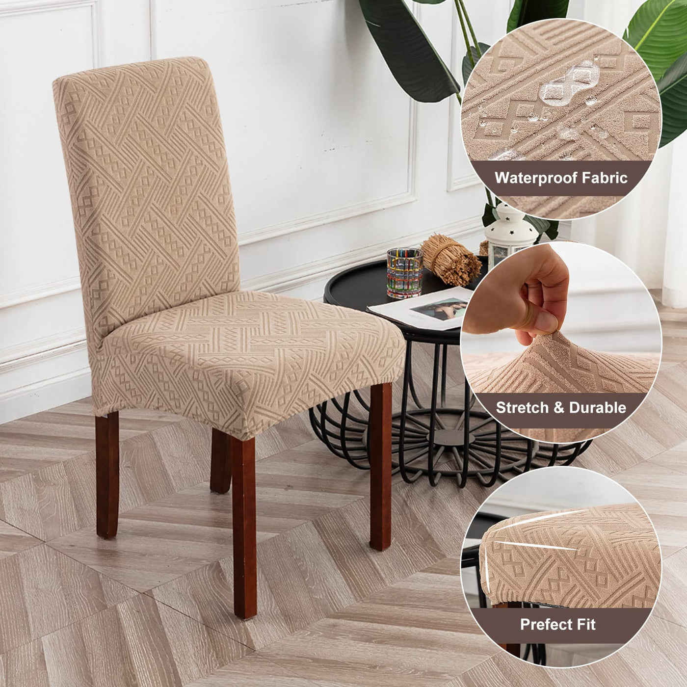 ?Unique 100% Waterproof Fabric? Genina Chair Cover For Dining Room With Waterproof Coating And A Specially Designed Pe Film Inner Layer. Double Waterproof Protection, Prevent Wet, Stains And Pet Damage. Stretch Kitchen Chair Covers Fit For Most Of Parsons Chair. Made Of High Elastic Fabric, Soft And Comfortable Material. Fashion And Durable. Great For Family With Kids And Pets.