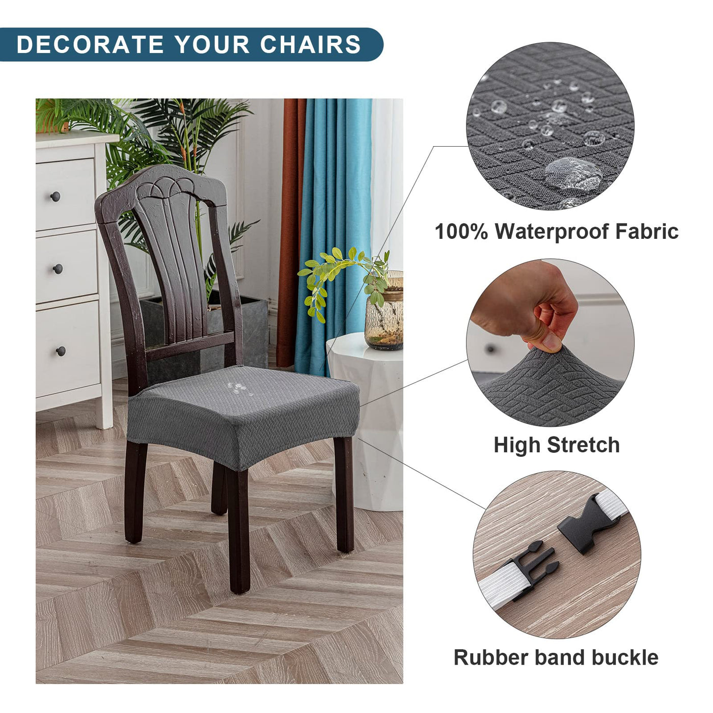 Genina Waterproof Seat Covers For Dining Room Chair Covers Waterproof Dining Chair Covers (2 Pcs-Rear-Covered, Dark Gray)