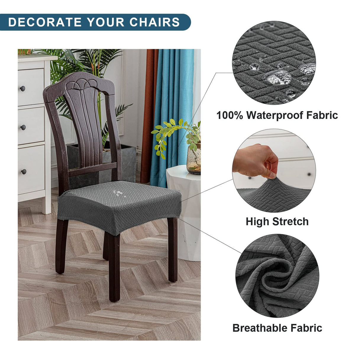 Q: Are these chair covers really waterproof?A: Yes, these dining room chair covers are made from 100% waterproof fabric, effectively preventing spills from water, wine, and milk, thus protecting your chair while maintaining comfort.
