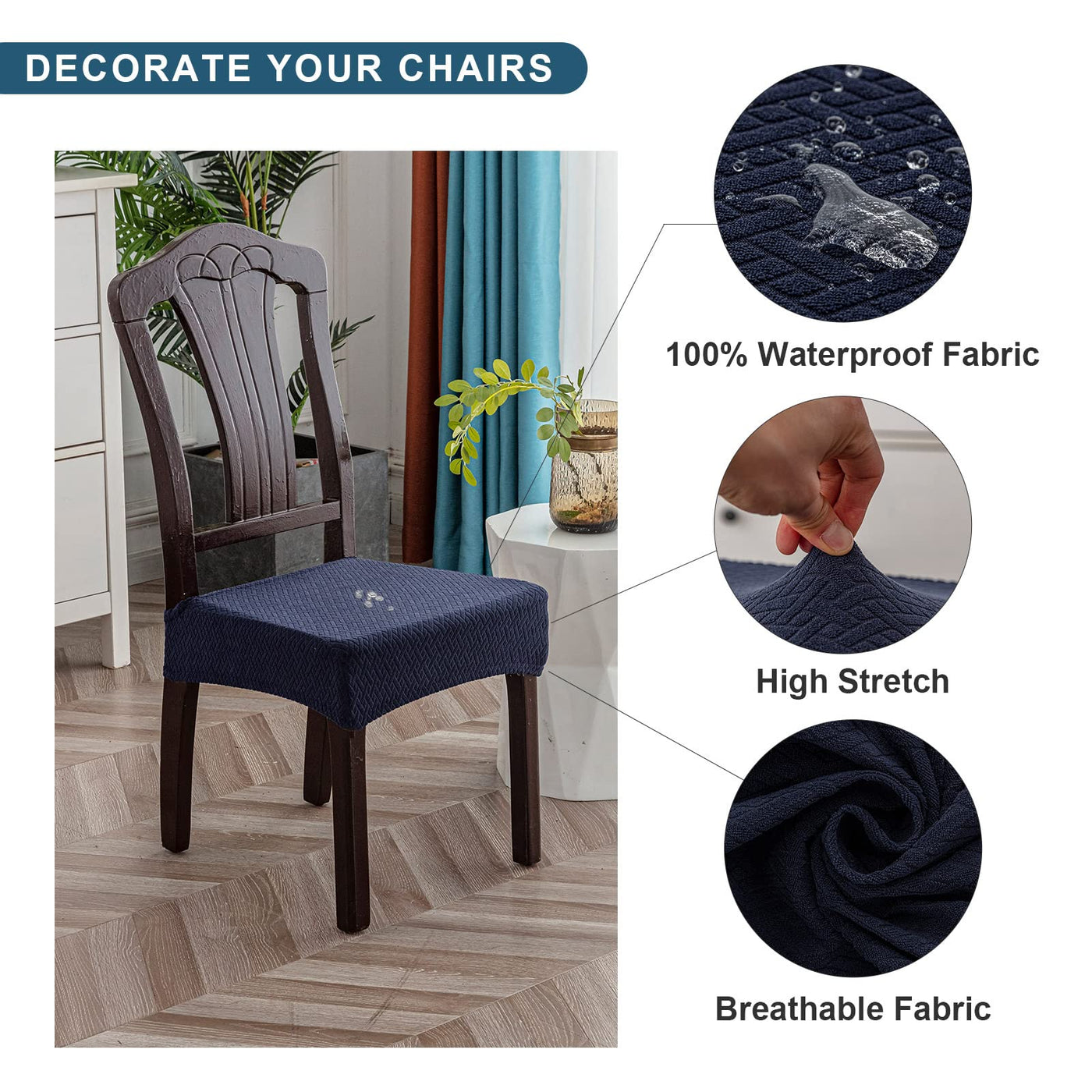 Genina Waterproof Seat Covers For Dining Room Chair Covers Waterproof Dining Chair Covers (2 Pcs-Rear-Gapped, Navy Blue)