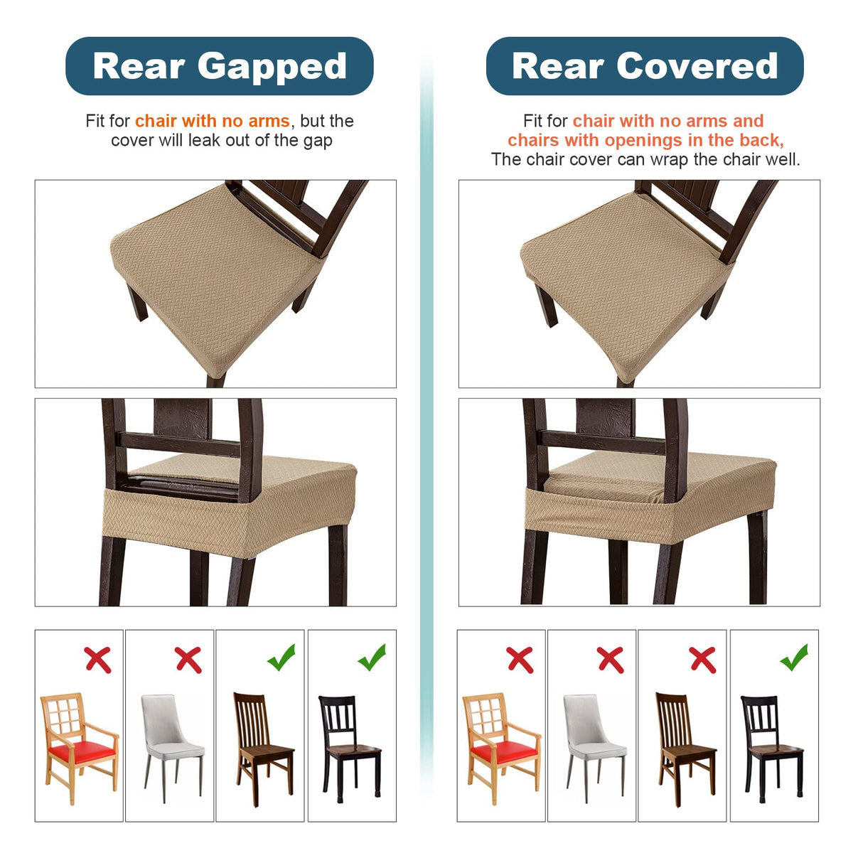 Q: Are the Genina Waterproof Seat Covers suitable for all types of dining chairs?A: The Genina Waterproof Seat Covers are designed to fit most dining chairs with seat cushion dimensions of 16''-20'' in length and width, and a thickness of 1.5''-2.7''. However, they are not suitable for chairs with armrests. It's recommended to measure your chair before purchasing.