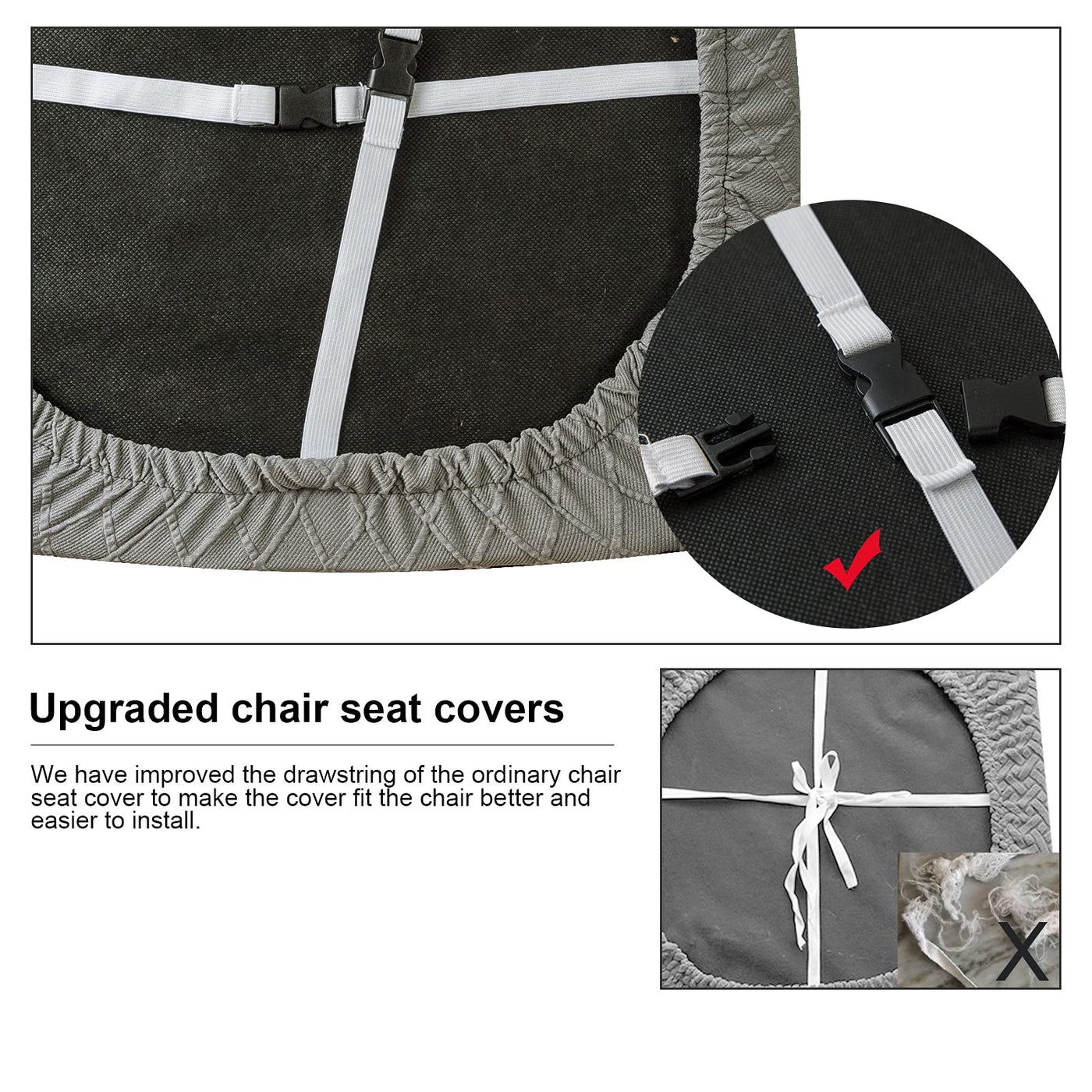 Q: How do I properly secure the chair covers to my furniture?A: The BROSYDA Patio Chair Covers come with four click-close straps and a cord lock closure at the bottom, which help to firmly secure the cover in place. Additionally, padded handles on the air vent make it easy to remove the covers when not in use.