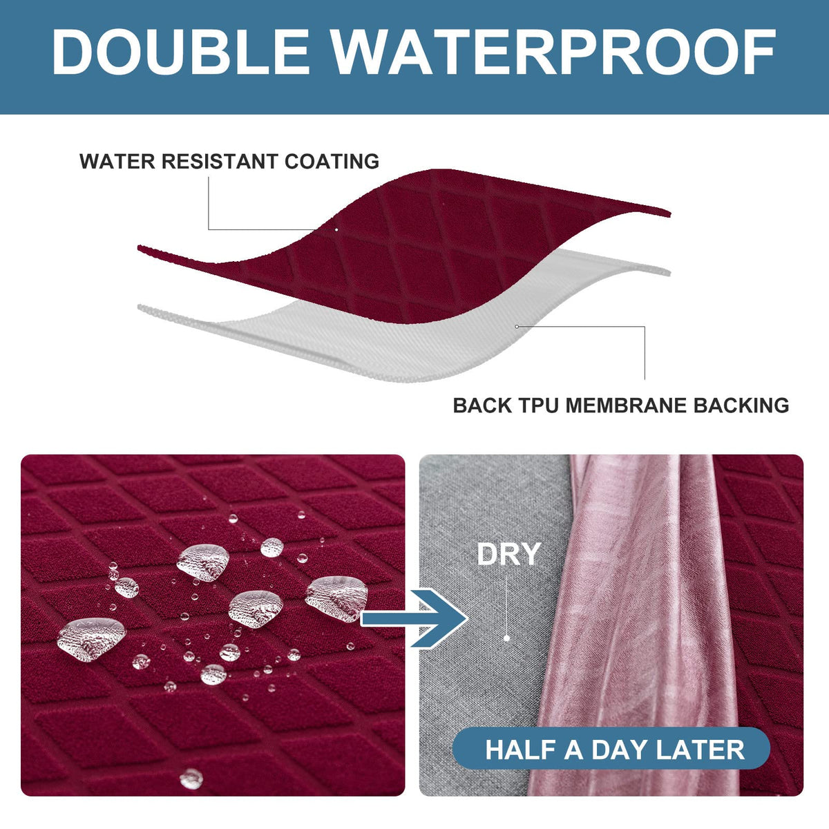 Q: Is the fabric of the chair covers really waterproof?A: Yes, the chair covers are made with a unique 100% waterproof fabric that includes a waterproof coating and a specially designed PE film inner layer for double protection against spills and stains.