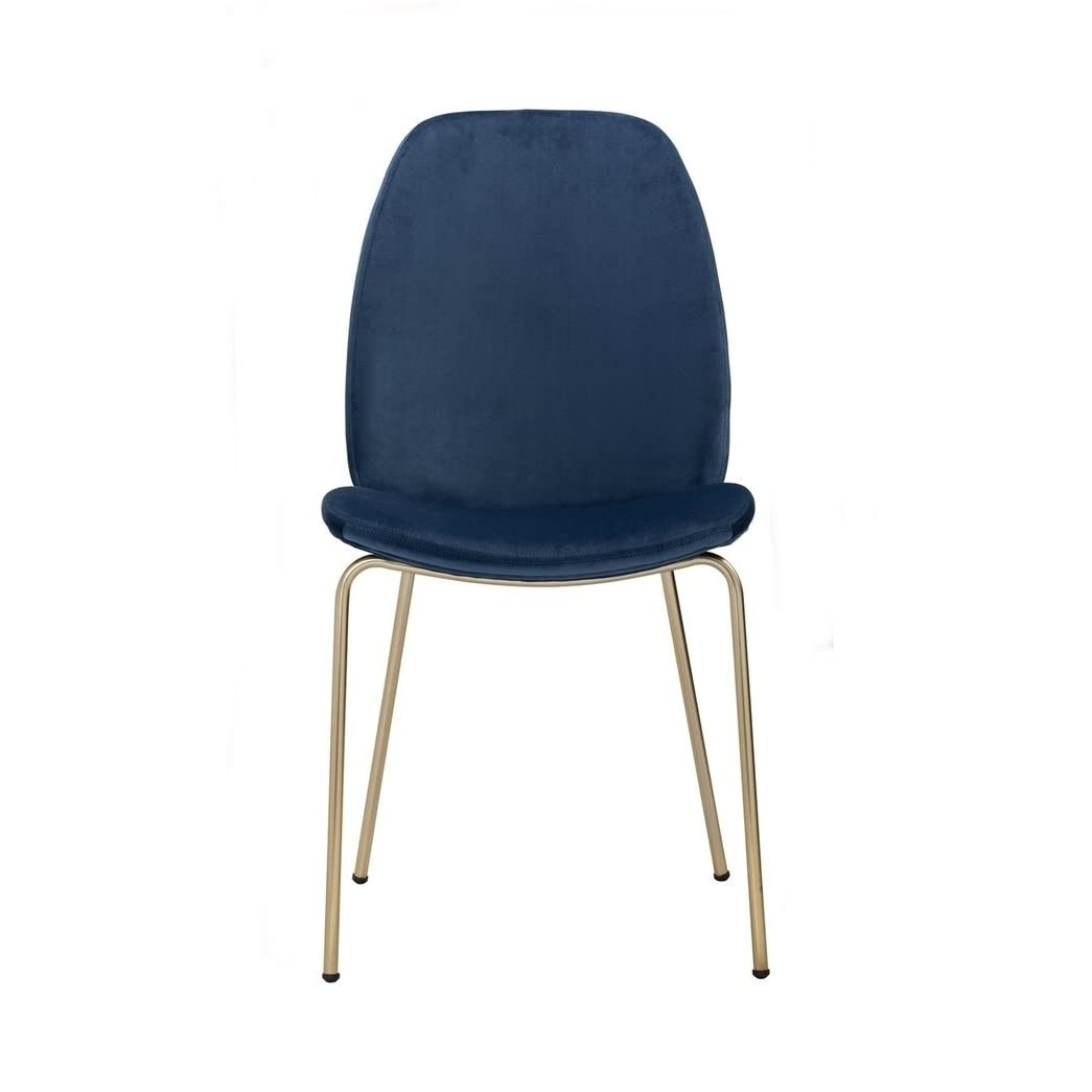 Adelia Dining ChairAdelia chair showcases a comfortable design and generously proportioned silhouette, the perfect chair for relaxation at any contemporary home.Material/Color: Veloutine fabric (100% polyester) in jungle green ; Gold metal legsDimensions: W 48.5cm x D 63cm x H 87.5cm Seat Height 47cm Shippedandby multiple of 2and(price is for one only)Blue Velvet Dining Chairand