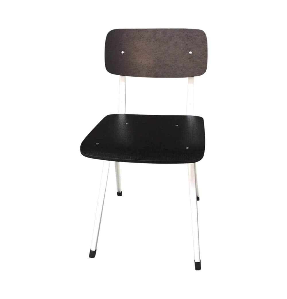 Rika ChairMaterial: Steel & PlywoodColor: White frame & Black ash veneer seat and back Dimensions: W 43cm x D 41cm x H 80cm | SH 46cm Shipped by multiple of 2 (is for one only)Wood and Metal Dining Chair