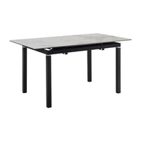 Give a polished and effortless update to your dining space or kitchen with our Giana Extendable Dining Table in Stone and Metal. With clean lines and a streamlined silhouette, our dining table serves as a versatile and welcoming addition to your home. It features a rectangular tabletop, perched upon a crisp black metal base. The tabletop is crafted in Carmen Gray Sintered Stone to offer a luxe appeal with easy maintenance. A reliable yet elegant alternative to quartz, this tabletop is resistant to etching, scratches, burns, and stains.With a durable construction and versatile appeal, our dining table is perfect for both casual and formal meals in a kitchen, dining room, or living space. The dining table can easily extend to seat up to four to six individuals. Perfect for enjoying your meals or spending leisurely time, the Giana dining table is available in Camren Gray Sintered Stone and Black Metal.