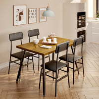 Gizoon 5 Piece Dining Table Set For 4, Modern Metal & Wood Kitchen Dinner Table With 4 Chairs, Space-Saving Dining Room Furnitur