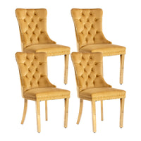 Gold Velvet Dining Chairs Set Of 4, Kitchen & Dining Room Chairs, Tufted Upholstered Dining Room Chair, Back Ring Pull Trim, Gol