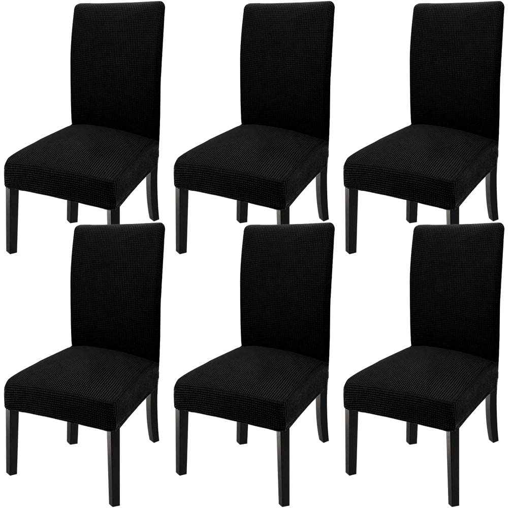 Goodtou Chair Covers For Dining Room Chair Set Of 4 - Black Chair Covers Set Of 6 Black Dining Chair Covers 6 Negros(Black, Set Of 6)