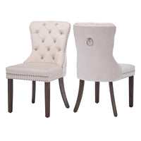 Goolon Dining Room Chairs Set Of 2, Velvet Button Tufted Dining Chairs With Rivet Trim Metal Pull Ring Wood Legs For Kitchen Res