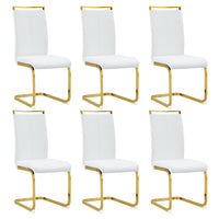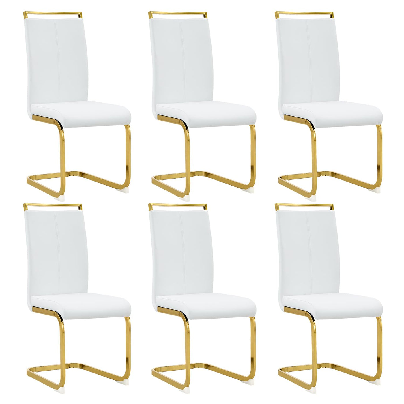 Gopop Modern Dining Chairs Set Of 6,High Back White Kitchen Chairs,Faux Leather Side Chair With Gold Plated Metal Legs,Easy To C