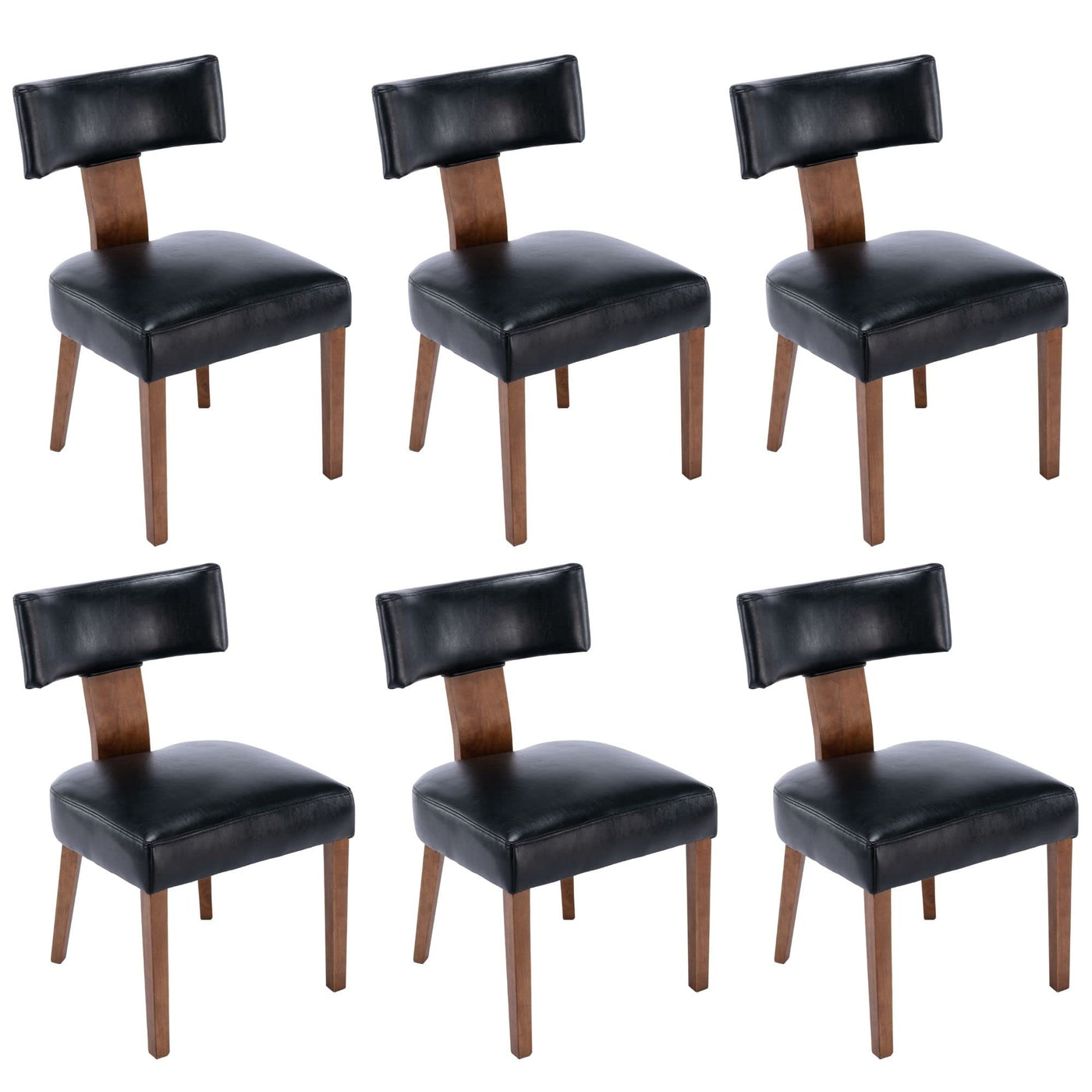 Hny Century Modern Dining Chairs Set Of 6, Farmhouse Pu Leather Upholstered Accent Chair Curved Backrest Kitchen Chairs, With Ha