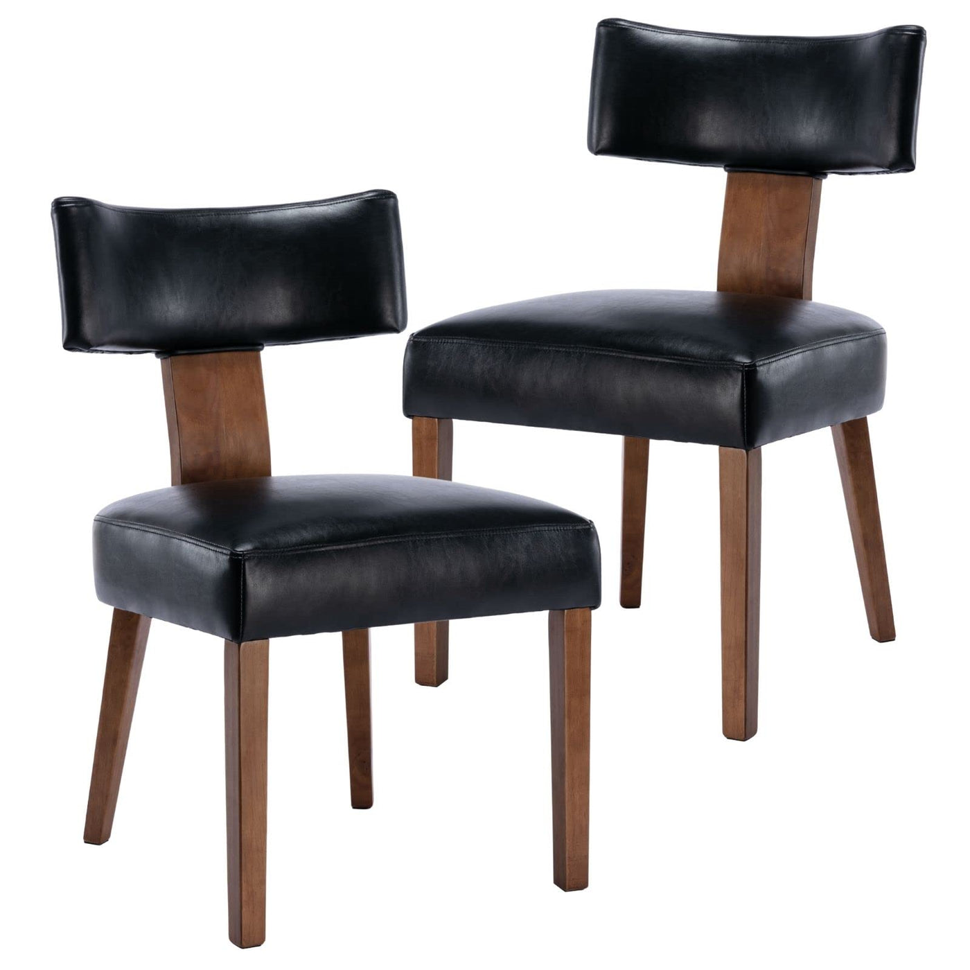 Hny Mid Century Modern Dining Chairs Set Of 2, Farmhouse Pu Leather Upholstered Accent Chair Curved Backrest Kitchen Chairs, Wit