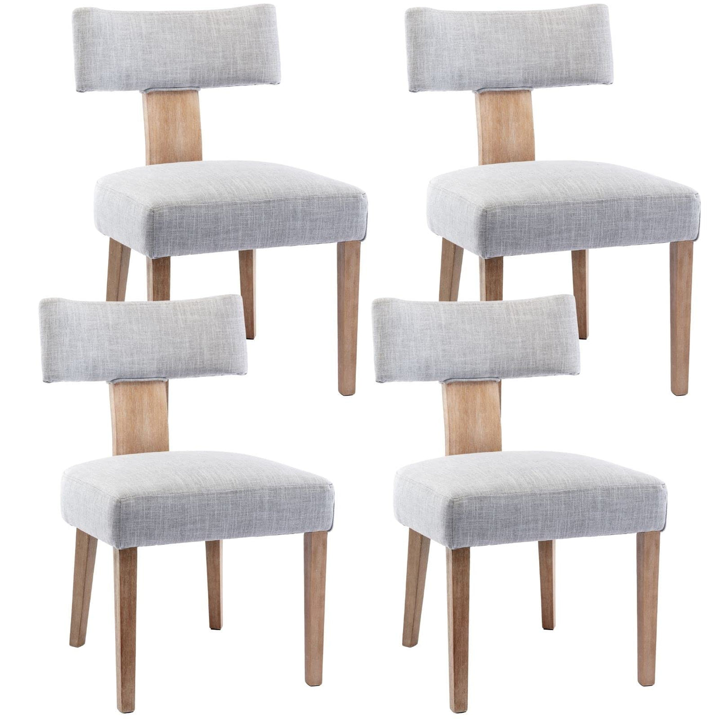 Hny Set Of 4 Mid Century Modern Dining Chairs, Farmhouse Linen Fabric Upholstered Accent Chair Curved Backrest Kitchen Chairs, W