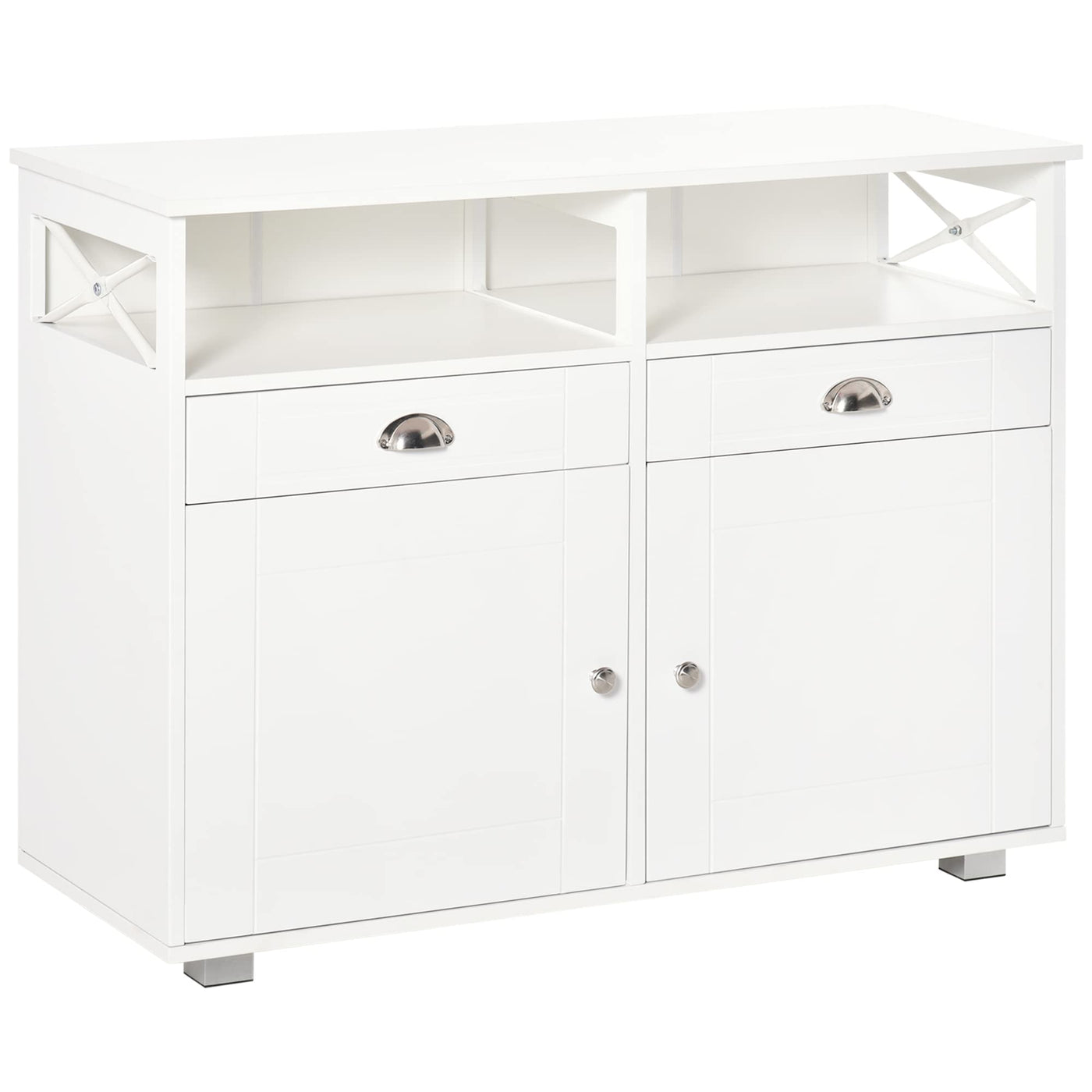Homcom Sideboard Buffet, Coffee Bar, Kitchen Cabinet With Storage Drawers, Large Tabletop And Crossbar Side Design, White