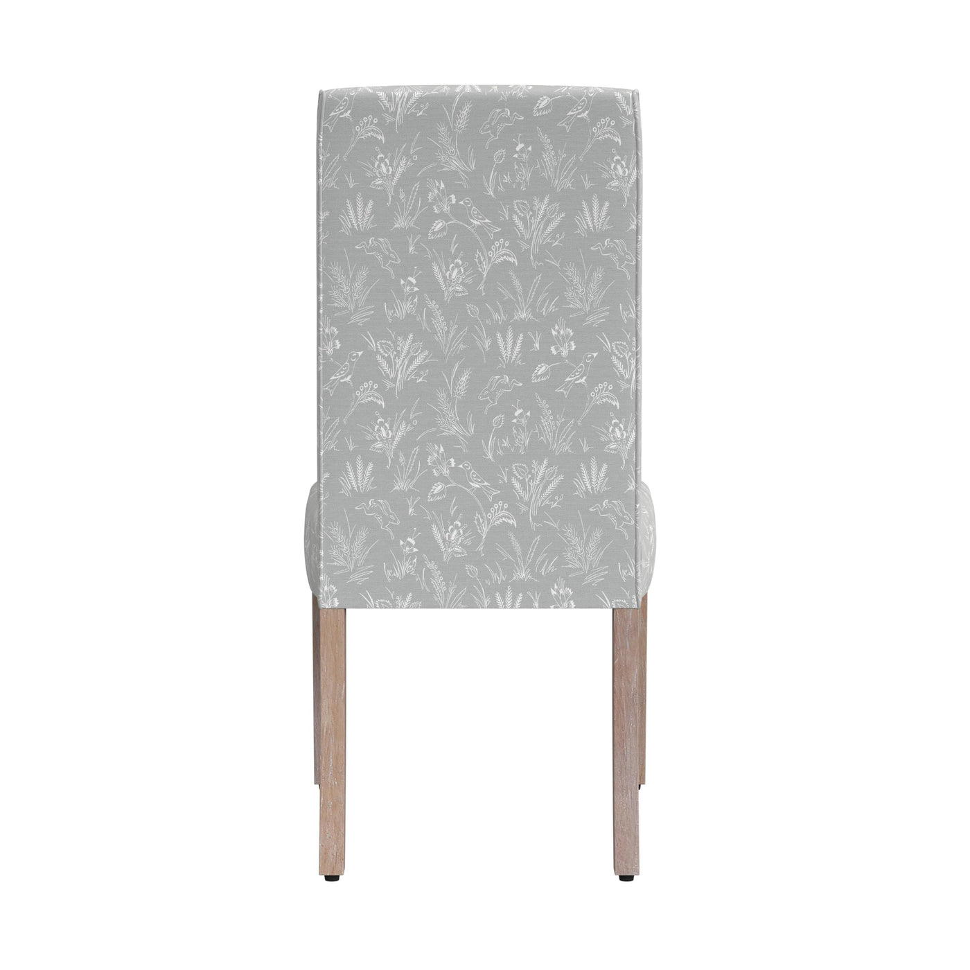 Homepop Scalloped Detail Dining Chair|Upholstered Parsons Dining Chairs |Decorative Home Furniture, Light Gray Floral With Animal Motifs (Set Of 2)
