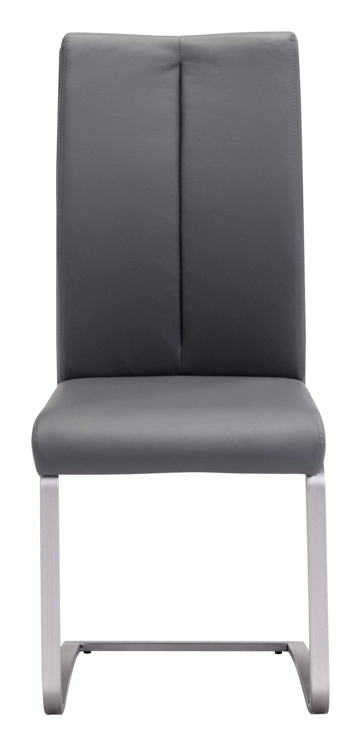 HomeRoots Decor 17.5-inch x 21.7-inch x 40.6-inch Gray, Leatherette, Chromed Steel, Dining Chair - Set of 2