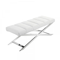 HomeRoots 473176 47 in. White & Silver Upholstered Faux Leather Dining Bench