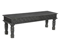 Add a good looking decorative accent to your space that is also practical for seating. Made of high quality solid wood, the all over black coloration gives this piece an updated and refreshing look. Complete with a purposefully distressed finish, this bench has an aged, vintage, and rustic feel. Add this bench to your kitchen or dining room for convenient seating at the table. Benches dont have to be unsightly. Increase your seating and the fashion quotient of your room all at the same time with this hard wearing, versatile, and good looking bench. Features. Distressed Solid Wood Dining Bench. Modern Rustic, handcrafted solid wood bench with carved detailing and fluted legs. Seats up to 2 people comfortably. Purposefully designed with distressed and rustic materials and finish. Benches are a great multipurpose decorative accent that is good looking, practical, and easy to work into most any room. Can hold up to 500 lbs. Ideal seating for dining room, living room, office space, hallway or bedroomSpecifications. Color Black. Size 58. Bench Type Dining Bench. Weight Capacity 500 lbs. Seating Capacity 2. Purposeful Distressing Type Wood Scoring Rub Through. Room Dining Area. Seating Wood Species Mango. Leg Material Manufactured Wood. Seat Material Solid Wood. Material Solid Wood. Assembly Required Full Assembly needed. Style Traditional. Country of Origin India. Dimension 18 H x 58 W x 16 D. Weight 44.1 lbs