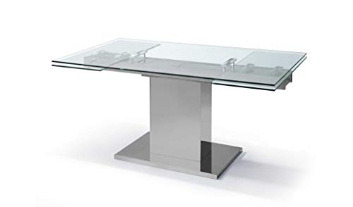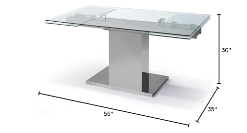 HomeRoots 55' X 35' X 30' Clear Glass Stainless Steel Extendable Dining Table
