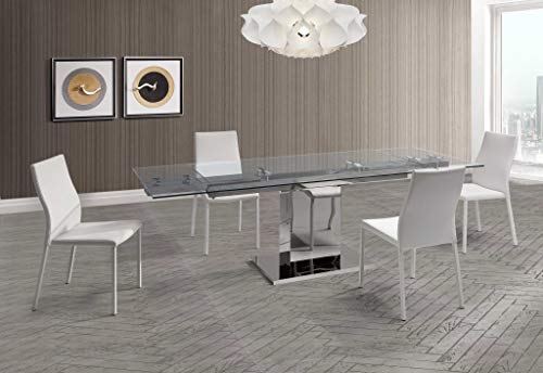 Astonish your friends with your sense of fashion and style with this gorgeous dining table, while augmenting your dining room in the same time. This dining table not only has a fascinating contemporary style, but a glass and clear color as well. It?s truly mesmerizing and shows charming and hands-on magnetism, which will give your home a warm feel. Its enchanting design will certainly be a wonderful embellishment to your interior too. It?s an excellently crafted piece, made from high grade glass. As for measurements, they are 30? for height, 55? for width, and 35? for depth, and it weighs 266 pounds.