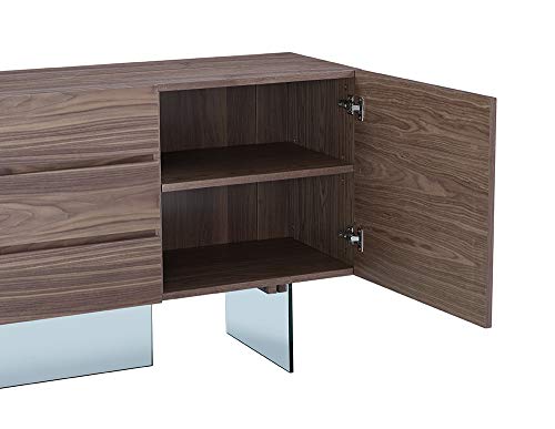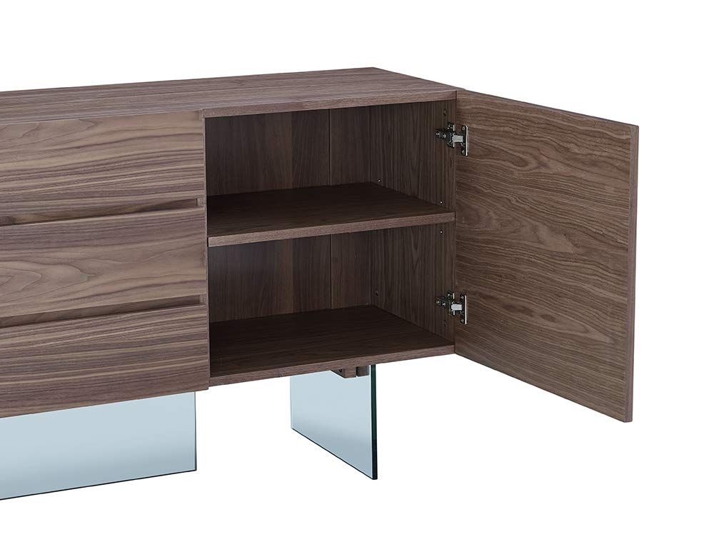 Buffet, walnut veneer with clear glass base, 3 drawers and 2 doors with self-closing hardware