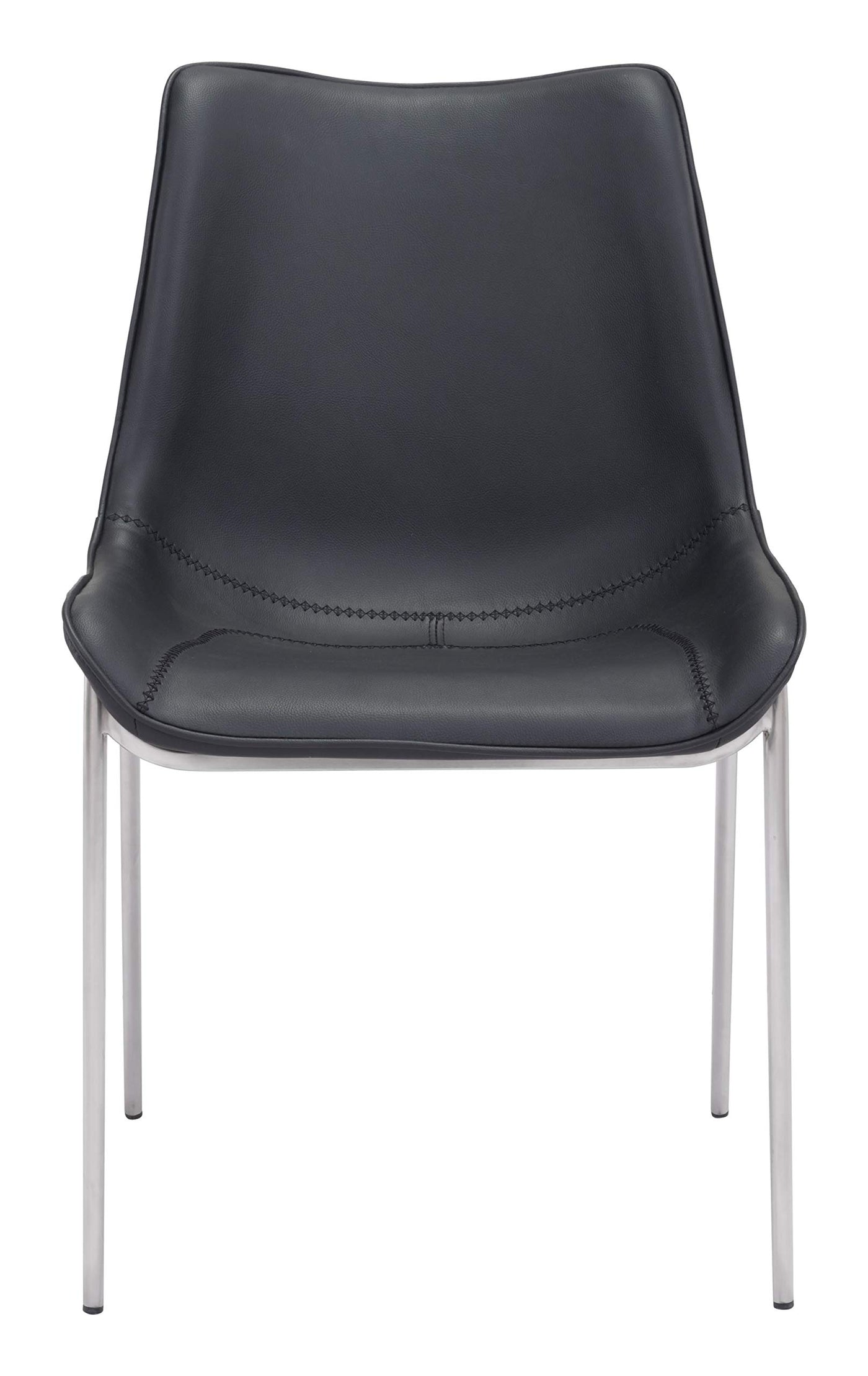HomeRoots Black & Brushed Stainless Steel 21.3' x 23.6' x 35.4' Black, Leatherette, Brushed Stainless Steel, Dining Chair - Set of 2
