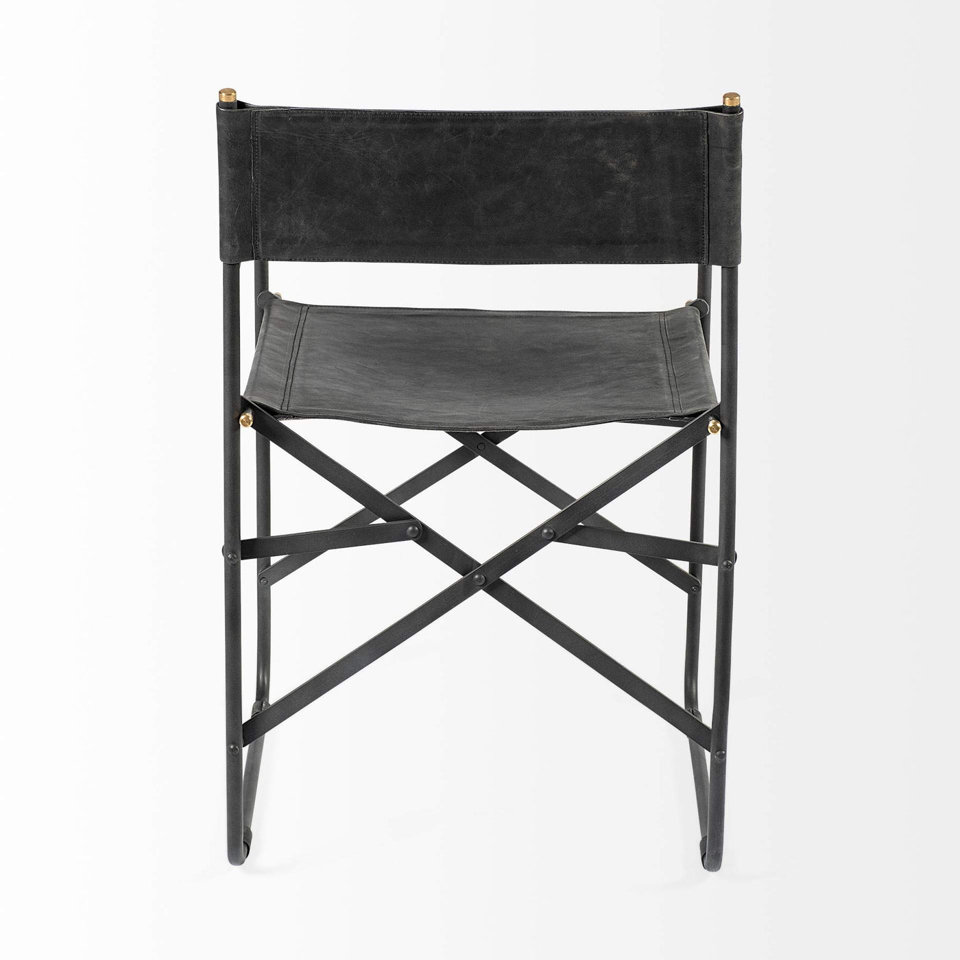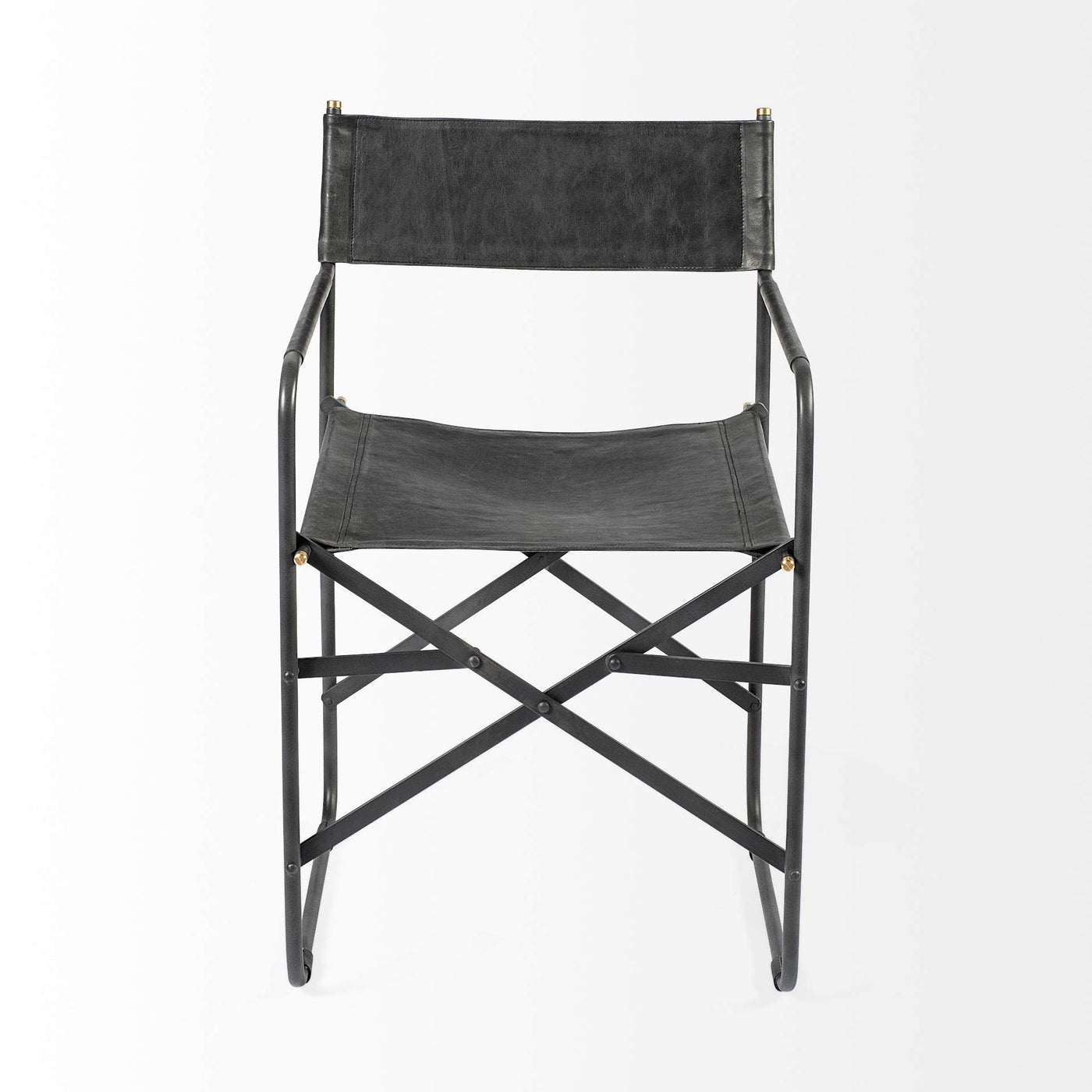 Inspired by a directors chair this is a prudently designed genuineleather armchair featuring a foldable metallic frame that exceptional stability and sturdiness This dining chair a spectacular armchair that is inspired by a directors chair features a solid iron frame and is easily foldable The metal frame supports a stretched seat and back crafted from genuine leather making this chair not only a versatile one but also a visually enticing and comfortable one Delivered preassembled this is ready to turn heads in your space as soon as it arrives at the door This dining chair is designed and recommended for indoor use as the leather seating is not water and moisture resistant Black Leather w Black Iron Frame Dining Chair Black Leather with Black Iron Frame Dining Chair Will Surelly give you a good new design on your house Features. Black Leather with Black Iron Frame Dining Chair. Made from high quality materialsSpecifications. Height 33 Inches. Width 217 Inches. Depth 197 Inches. Material Metal. Color Black. Style Modern. Country of Origin India. Weight 134 lbs
