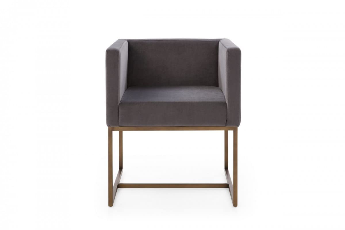 Charming and super stylish, the Dark Gray Antique Brass Dining Chair is a unique dining chair that will bring contemporary charm to your dining room. With its perfect backrest height, comfortable armrests, and covered in stain-resistant velvet over a layer of dense foam padding, it offers a premium seating experience. The sturdy metal base comes in an elegant brushed brass finish. 29'H x 24.8'W x 22'D