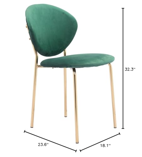 HomeRoots Decor 18.1-inch x 23.6-inch x 32.3-inch Green & Gold, Velvet, Steel & Plywood, Chair - Set of 2