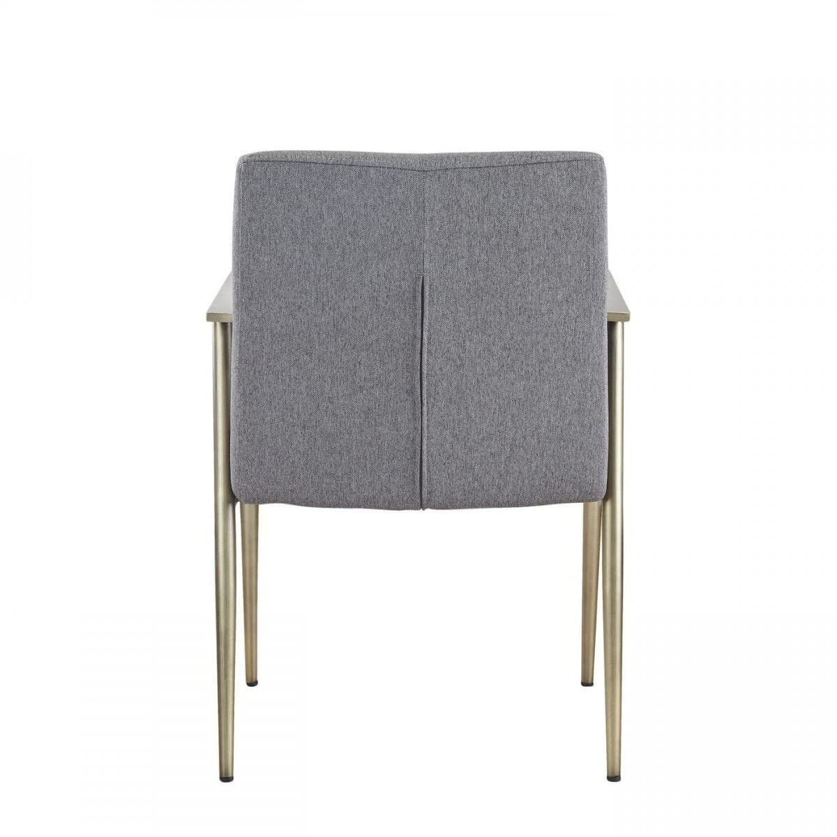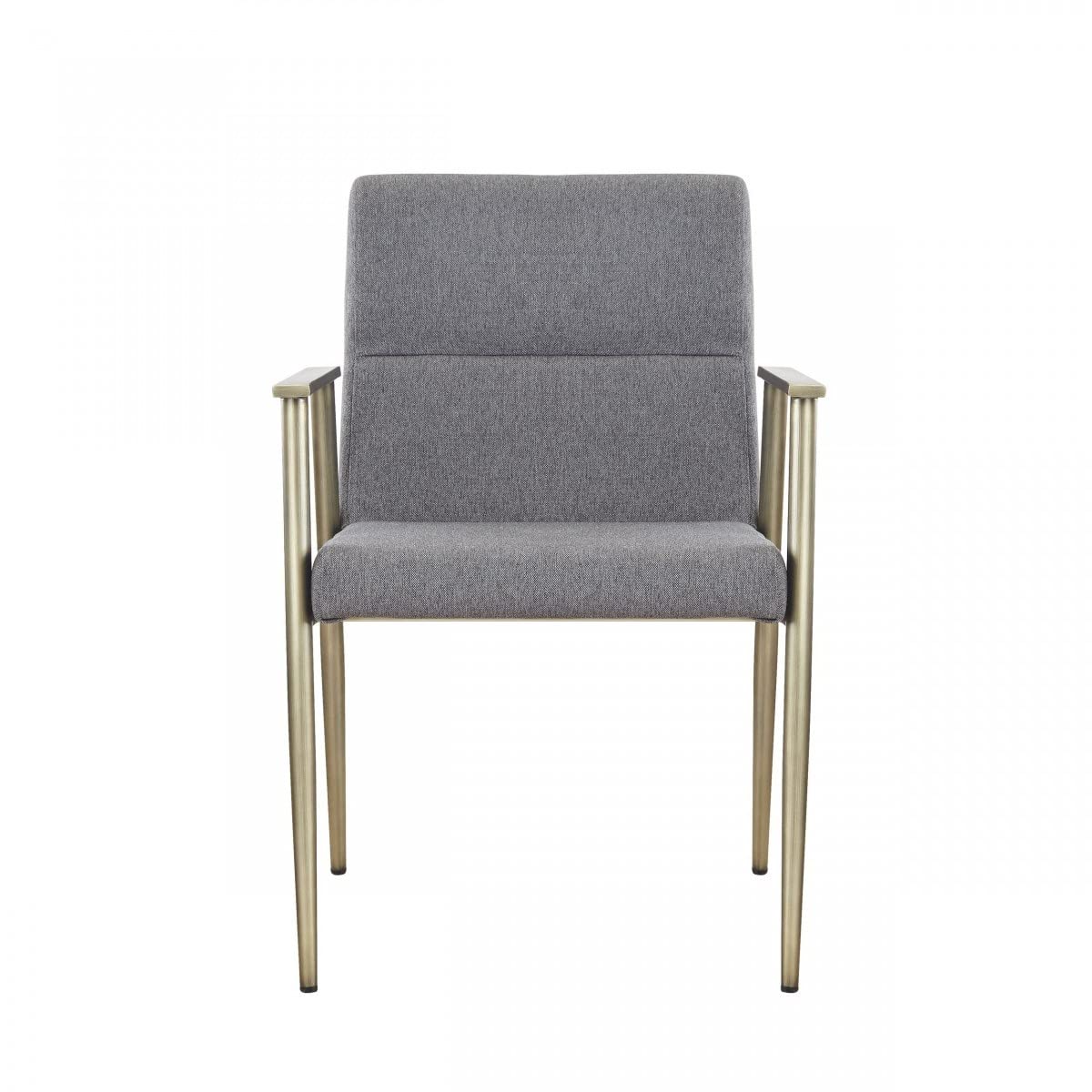 Accommodate guests comfortably with the gorgeous Gray Antique Brass Contemporary Dining Chair! This beautiful classic chair features a sturdy metal frame with all-metal legs and armrests and a beautifully upholstered seat in a modern gray fabric. Sit comfortably and flawlessly complement your home's decor with this awesome chair! 32" H x 22" W x 24" D