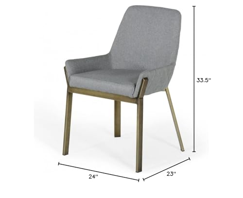 Take dinner to a whole new level with the Gray Antique Brass Dining Chair. Eye-catching and super comfortable, this contemporary marvel features a metal base with a beautiful antique brass finish and a masterfully upholstered seat in a modern gray color. The high backrest offers support and comfort for extended sitting. 33.5'H x 23'W x 24'