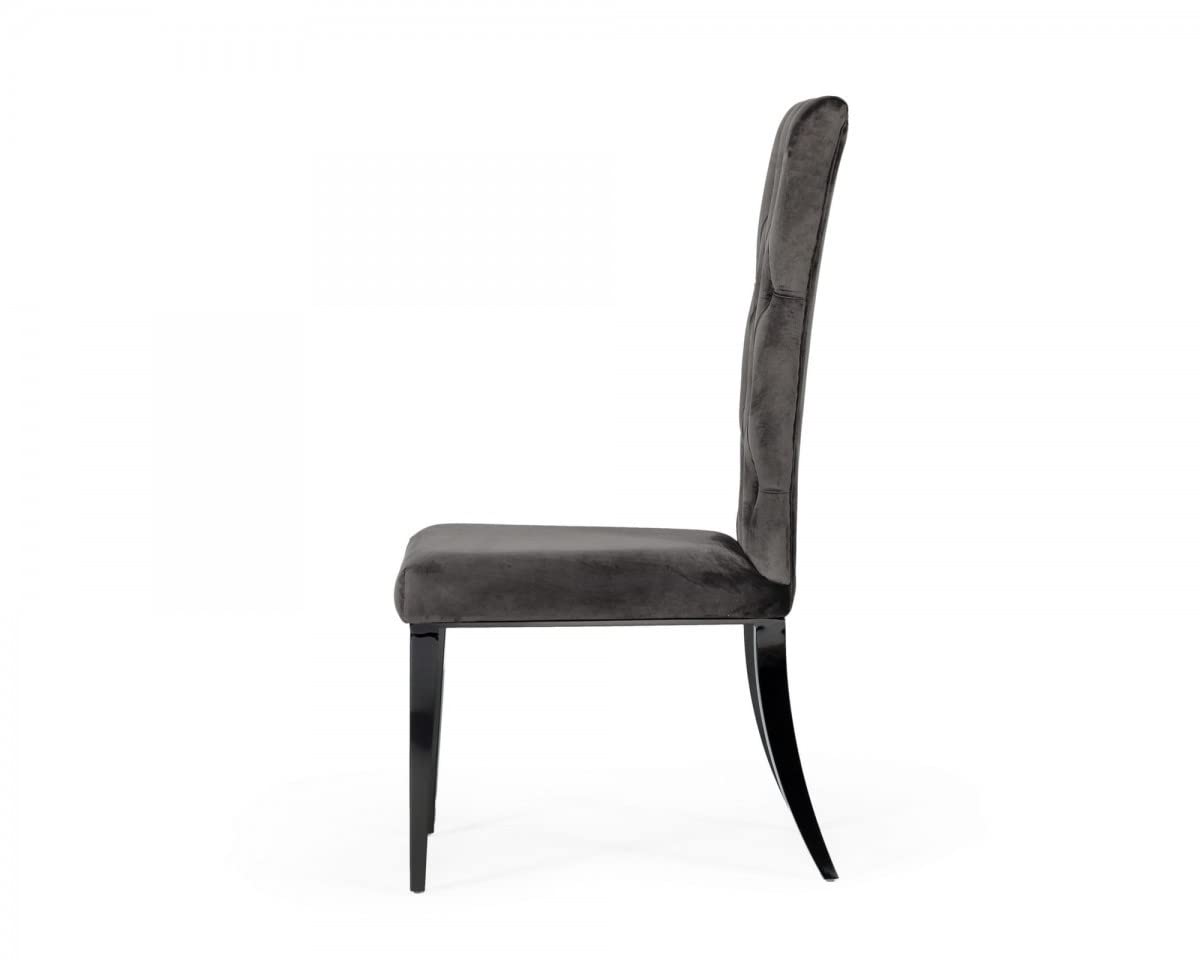 A perfect choice for an elegant dining room, the Gray Velvet Modern Dining Chair Set of 2 is an exquisite dining chair with a high backrest. Built to last, this chair is made of velvet stretched on a durable solid wood frame with a thick cushion. The deep tufting on the seat and black legs just add a ton of modern excellence. 41' H x 20' W x 28' D
