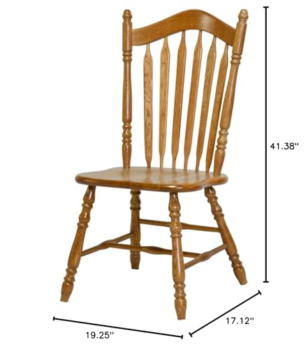 This traditional style side or dining chair features a rustic style and a fancy Harvest Oak color finish that makes your space comfortable and elegant. The high ladder back and spindles offer a time tested look that never goes out of style. 19.25' X 17.125' X 41.375'