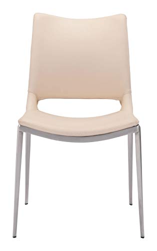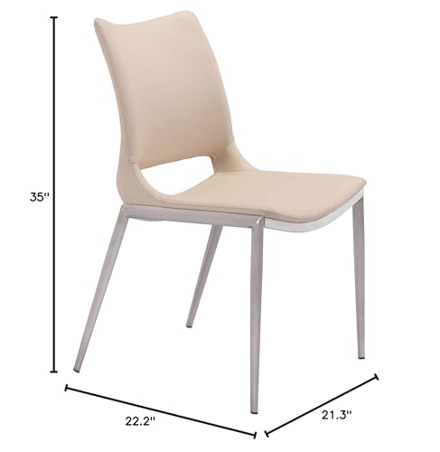 HomeRoots Light Pink & Brushed Stainless Steel 21.3' x 22.2' x 35' Light Pink, Leatherette, Brushed Stainless Steel, Dining Chair - Set of 2