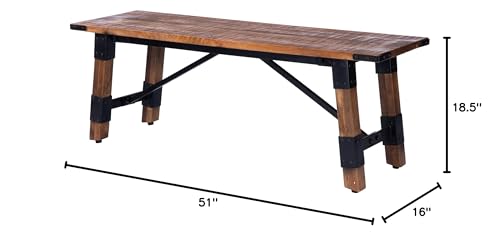 A gorgeous mix of design styles comes together to create this fabulous Mod Industrial Rustic Wood Bench. Crafted of highquality solid woods in a naturally rustic and textured finish this industrial styled bench is trimmed with black iron accents that give it a very distinct and stylish feel. The contrast of the natural wood and the black gives this bench a super sharp look. Versatile and transitional in design this bench can work as well in the entrance hallway as it does in the kitchen or office the possibilities are endless. Features. Transitional styling goes with multiple design aesthetics. Enhance your space with this decorative seatingSpecifications. Color Natural, Brown. Finish Industrial Chic. Material Mango Wood, Iron. Style Transitional. Leg Material Solid Wood. Leg Height 16 in.. Dimension 18.5 x 51 x 16 in.. Country of Origin India. Weight 63 lbs
