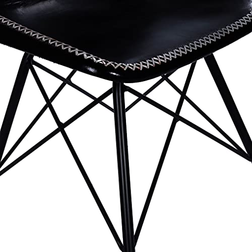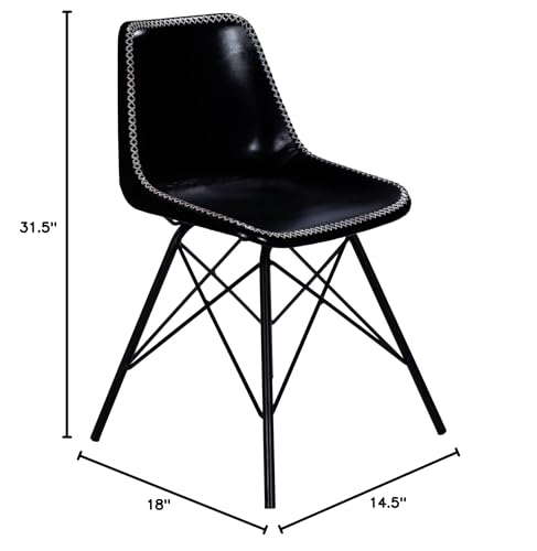 Black Contrast Stitch Leather Dining Chair HomeRoots offers a wide variety of choices, in the tensofthousands and growing, in furniture, lighting and home decor products at extremely competitive pricing. Highlighting your decor has never been easier, the Black Contrast Stitch Leather Dining or Side Chair adds a touch of midcentury modern with a hint of contemporary. Exquisitely molded from pure black leather bucket seats with a contrasting white cross stitch seam and propped upon Eiffel tower styled black iron legs, it is perfect to compliment any space, be it your home, office or restaurant. Minimalistic in design this captivating silhouette can be easily transferred from room to room for a better seating experience. 31.5 x 18 x 14.5. Specifications. Color Black. Style Modern. Material Leather. Country of Origin India. Dimension 31.5 H x 18 W x 14.5 D. Weight 28 lbs