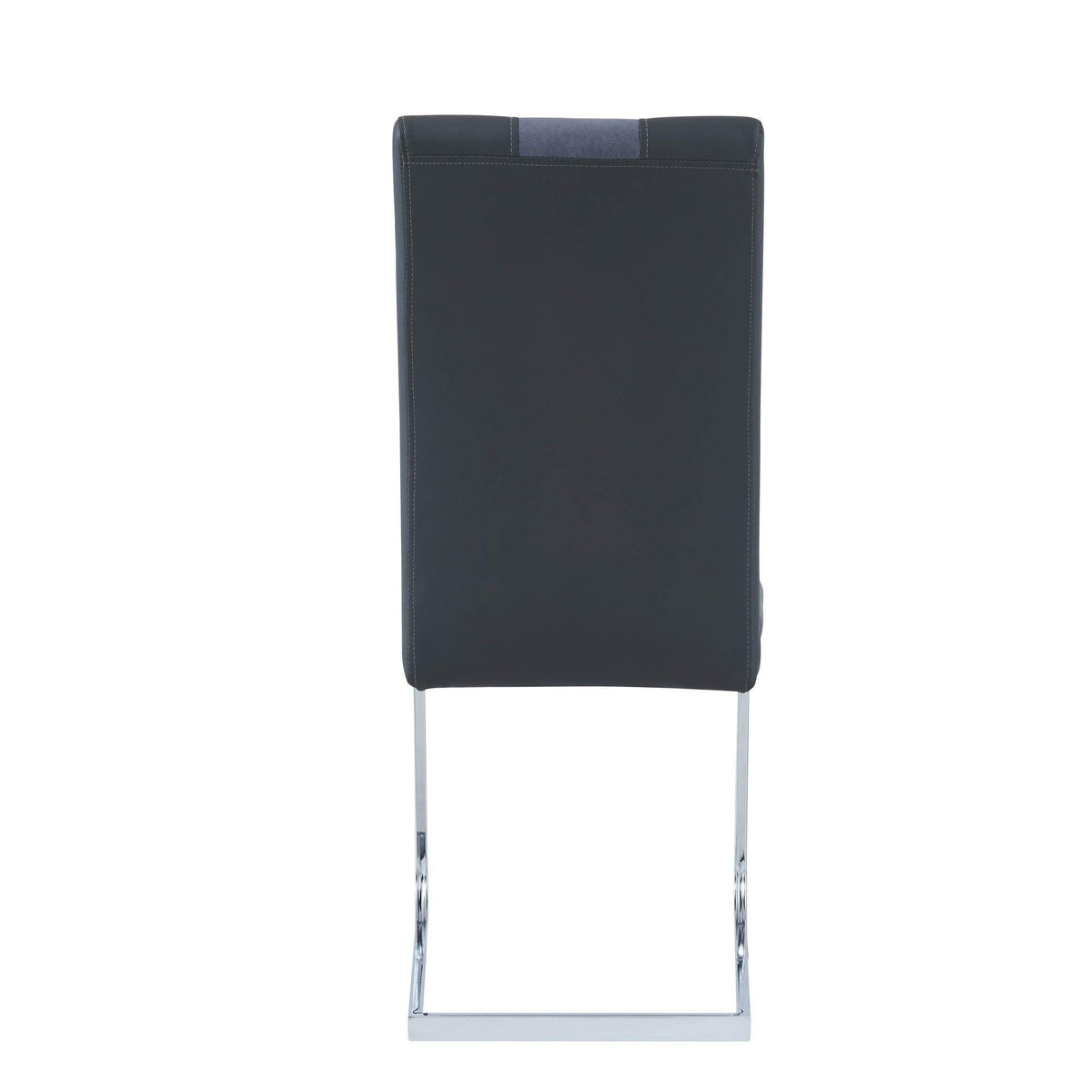 Perfect for your kitchen or breakfast nook, this two-toned dining chair will transform your room and add comfort and charm. This chair is upholstered in tones of grey faux leather (PU) and fabric, providing an eye-catching and modern twist to traditional kitchen seating. Decorating possibilities are endless with the attractive tones of this chair. Additional It include a sleek style silver toned metal base and ample padding, continuing the delightful look and comfy feel of this seating. Quality craftsmanship in every facet of production ensures durability and long-lasting wear. For a stylish and modern take on kitchen or dining room furnishings, this chair is a cant miss choice in comfortable seating.
