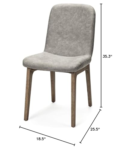 Rested on a solid, fourlegged beechwood frame finished in a natural brown polish, this dining chair is stable and exceptionally sturdy. This dining chair, featuring a solid back seat wrapped in plush greytoned fabric, makes for a comfortable as well as a visually enticing addition to any dining room. Prudently designed to uplift contemporary spaces, this dining chair flaunts a sleek silhouette, with subtle curves and clean lines. Delivered preassembled, this is ready to turn heads in your space as soon as it arrives at your doorstep. Grey Fabric Wrap w/ Medium Brown Wood Base Dining Chair. Grey Fabric Wrap with Medium Brown Wood Base Dining Chair Features. Grey Fabric Wrap with Medium Brown Wood Base Dining Chair. Made from high quality materialsSpecifications. Height 35.3 Inches. Width 25.5 Inches. Depth 18.5 Inches. Material Wood. Color Brown. Style Modern. Weight 45.2 lbs