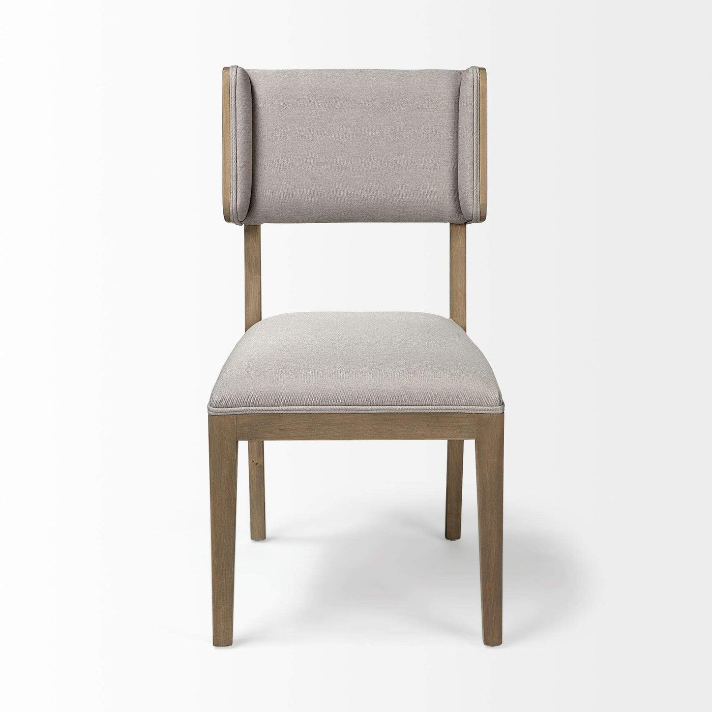 HomeRoots Light Gray Gray Fabric Wrap with Brown Wooden Base Dining Chair