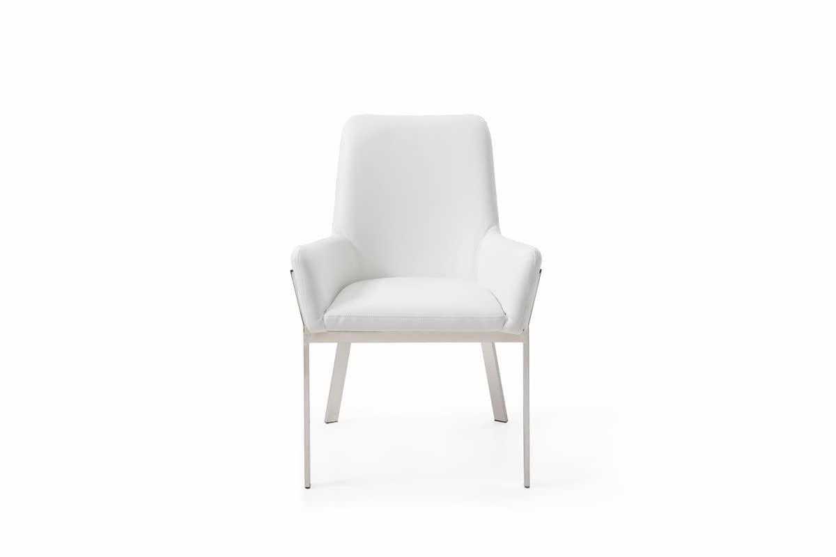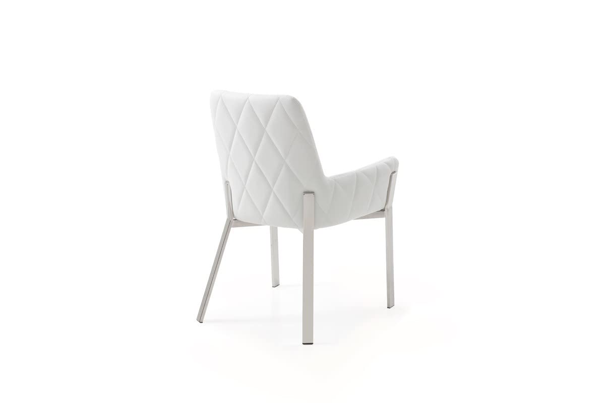 Take dinner to a whole new level with the White Faux Leather Dining Chair. Eye-catching and super comfortable, this contemporary marvel features a beautifully finished stainless steel base and a masterfully upholstered seat in a rich emerald green color. The high backrest offers support and comfort for extended sitting. 36'H x 36'W x 24'D