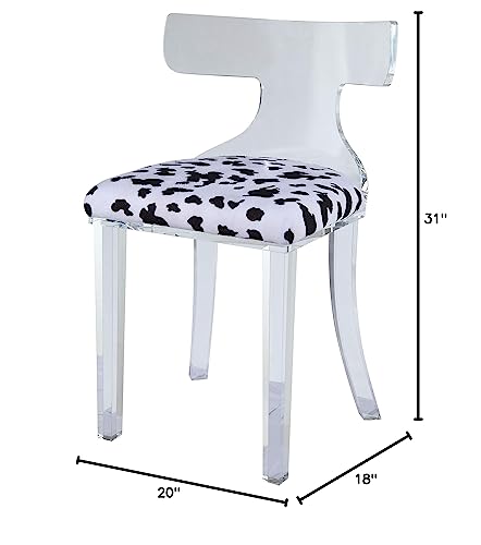 Accentuate Your Dining Or Sitting Area With Accent Chair. The Transparent Ghost Chair Brings Modern Design, Elegance And Function To Your Home With Its Unique ?T? Shaped Backrest And Shaggy Spotty Velvet Seat Cushion. The Completely Clear Chair Will Not Only Highlight Your Other Furniture But Also Lightens A Crowded Space And Can Make A Small Room Appear Larger. A Contoured Seat Cushion Makes This Armless Chair Comfortable And Its Sturdy Acrylic Frame Is Shock, Scratch And Water Resistant.**