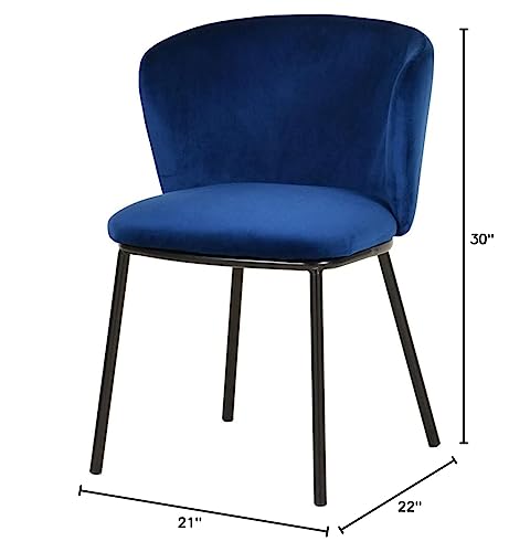 HomeRoots Velvet, Metal Set of Two Royal Blue Velvet and Black Modern Dining Chairss