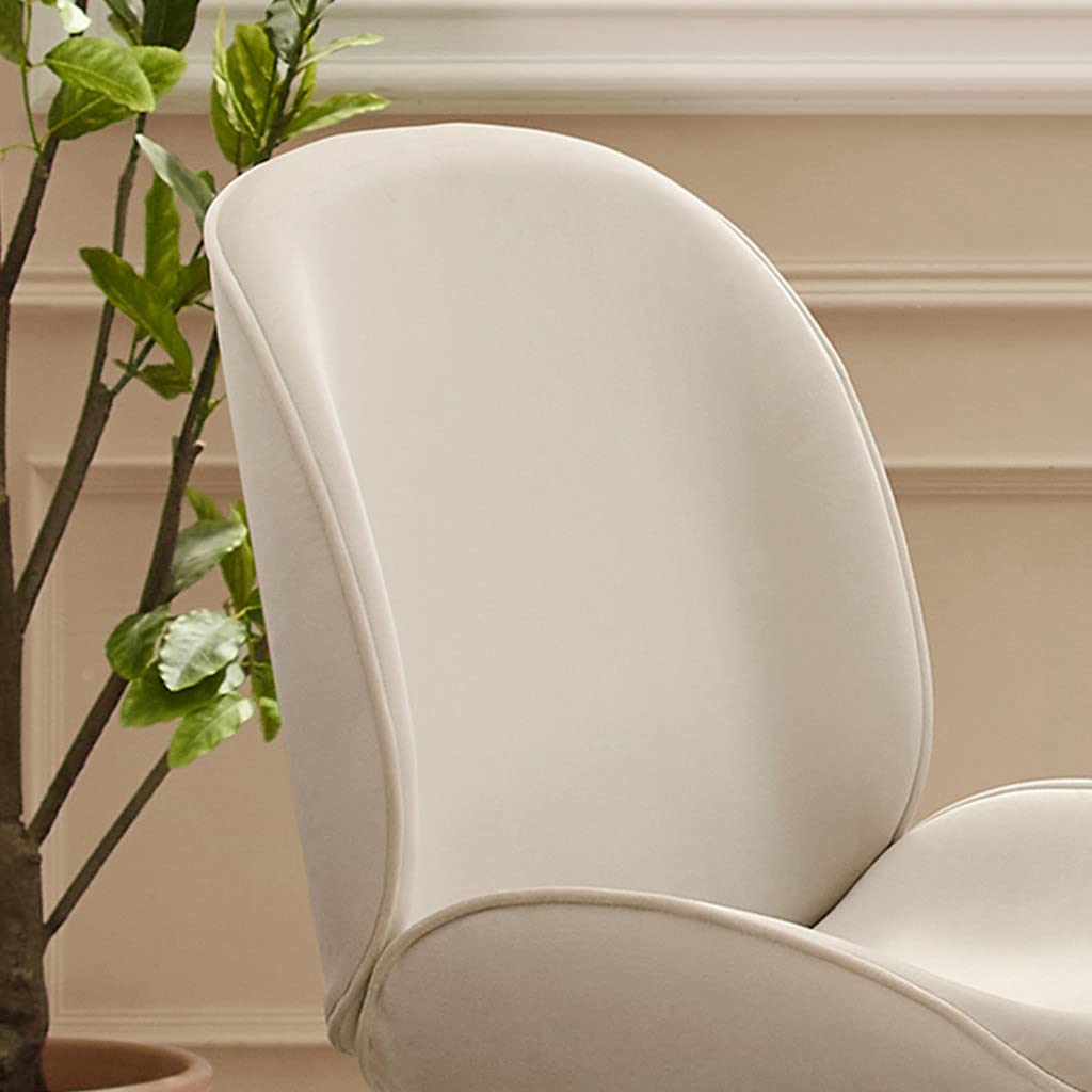 Enhance your dining experience and add a contemporary style to your space with this Gold and Beige Velvet Shell Shape Dining Chair. The pleasing visual color combines the beige velvet shell shape cushions and the golden metal legs, making it attractively inviting you to take a relaxing sit. The superb comfortable velvet cushions and armless shell shape were designed to make it perfect for any dining or other empty places in your home or office. It features soft foam padded cushions that are made to stay in shape to give you a comfortable seat that last-long. The golden metal legs are perfectly made to make the chair sturdy and durable. Set the touch of elegance and little glamour on your dining area or in any contemporary setting with this shell shape dining chair.