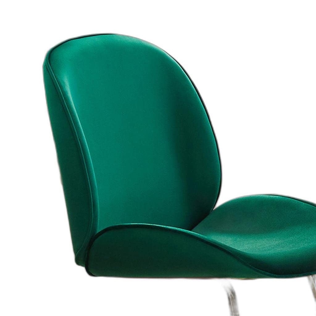 Enhance your dining experience and add a contemporary style to your space with this Gold and Green Velvet Shell Shape Dining Chair. The pleasing visual color combines the green velvet shell shape cushions and the golden metal legs, making it attractively inviting you to take a relaxing sit. The superb comfortable velvet cushions and armless shell shape were designed to make it perfect for any dining or other empty places in your home or office. It features soft foam padded cushions that are made to stay in shape to give you a comfortable seat that last-long. The golden metal legs are perfectly made to make the chair sturdy and durable. Set the touch of elegance and little glamour on your dining area or in any contemporary setting with this shell shape dining chair.