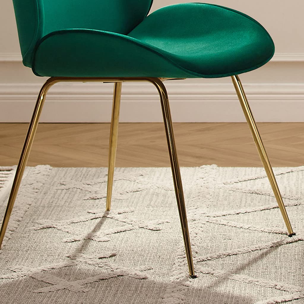 HomeRoots Velvet Seat, Metal Legs Gold and Green Velvet Shell Shape Dining or Side Chair