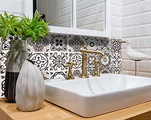 HomeRoots Vinyl 4" x 4" Light Brown and White Mosaic Peel and Stick Removable Tiles